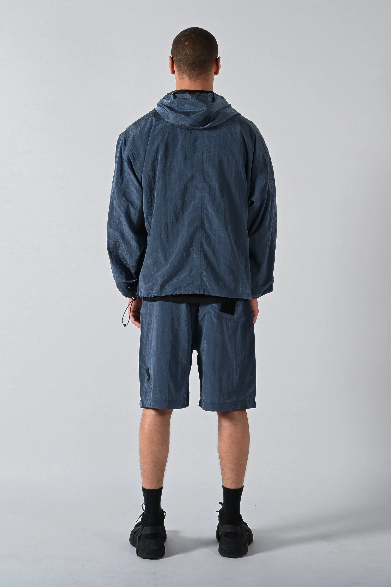 Versatile lightweight Reflective fabric short featuring an elasticated waistband with adjustable velcro side tabs, twisted side seams, a large back patch pocket, adjustable elasticated cuffs and taped internal seams.