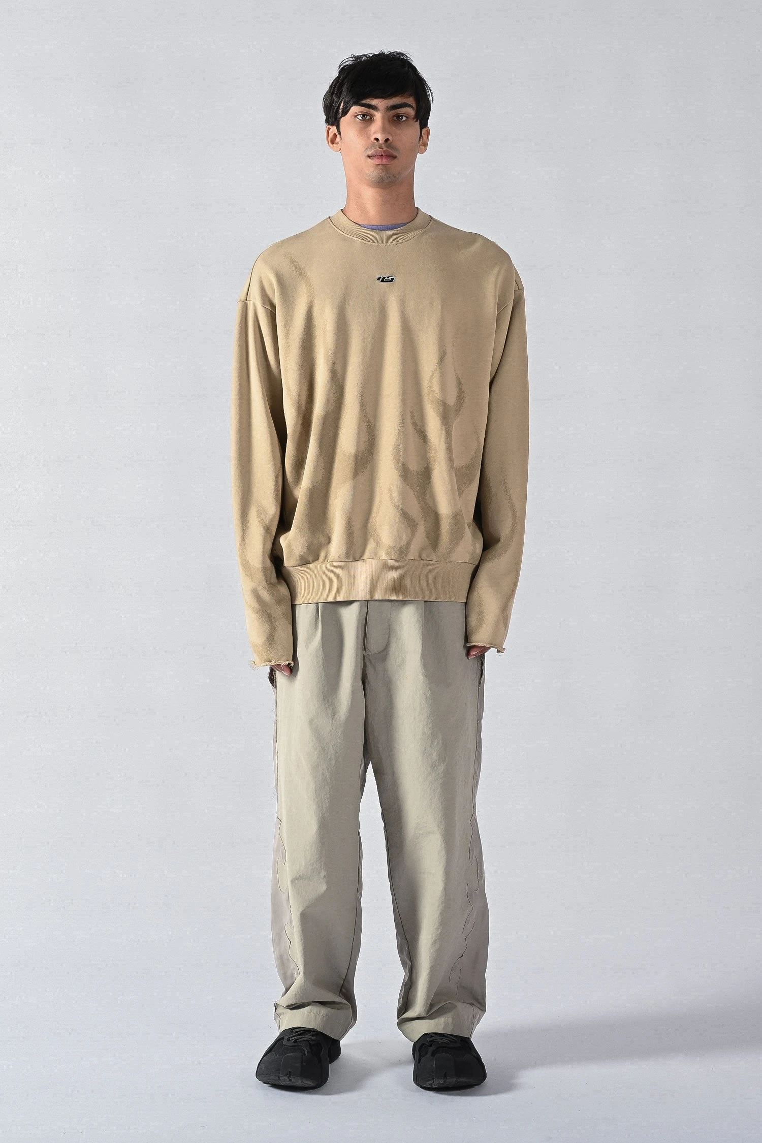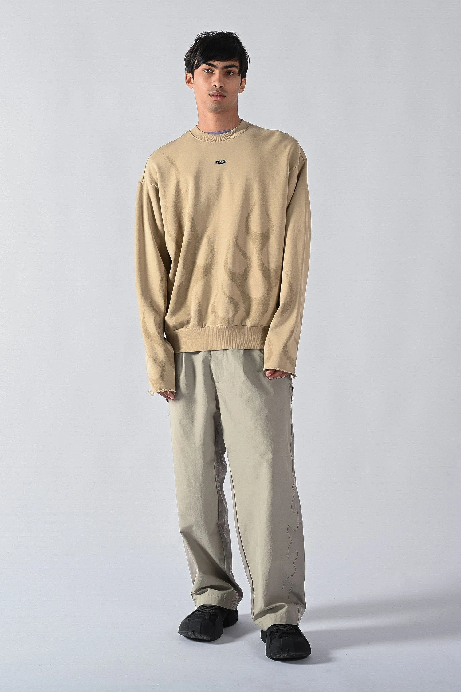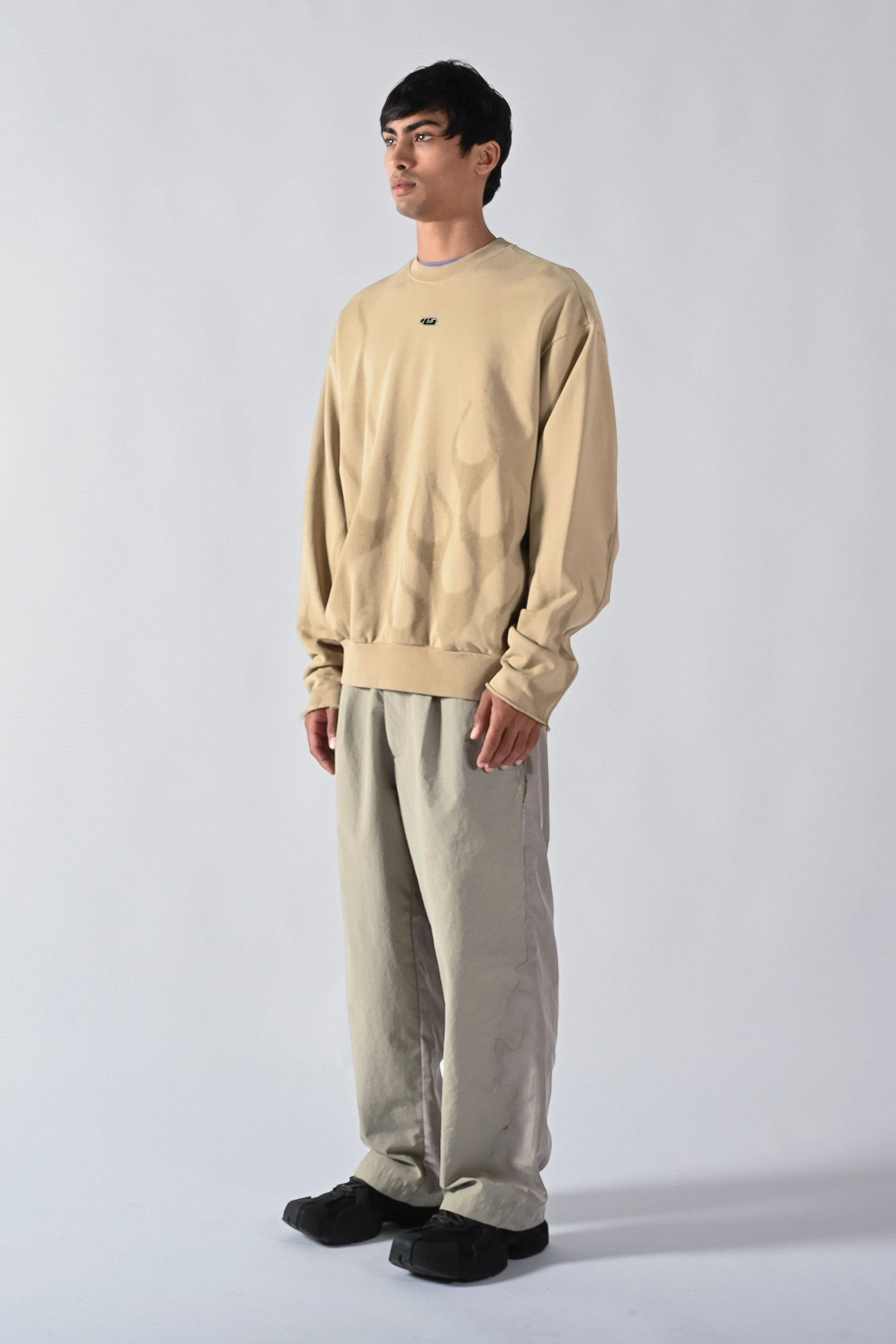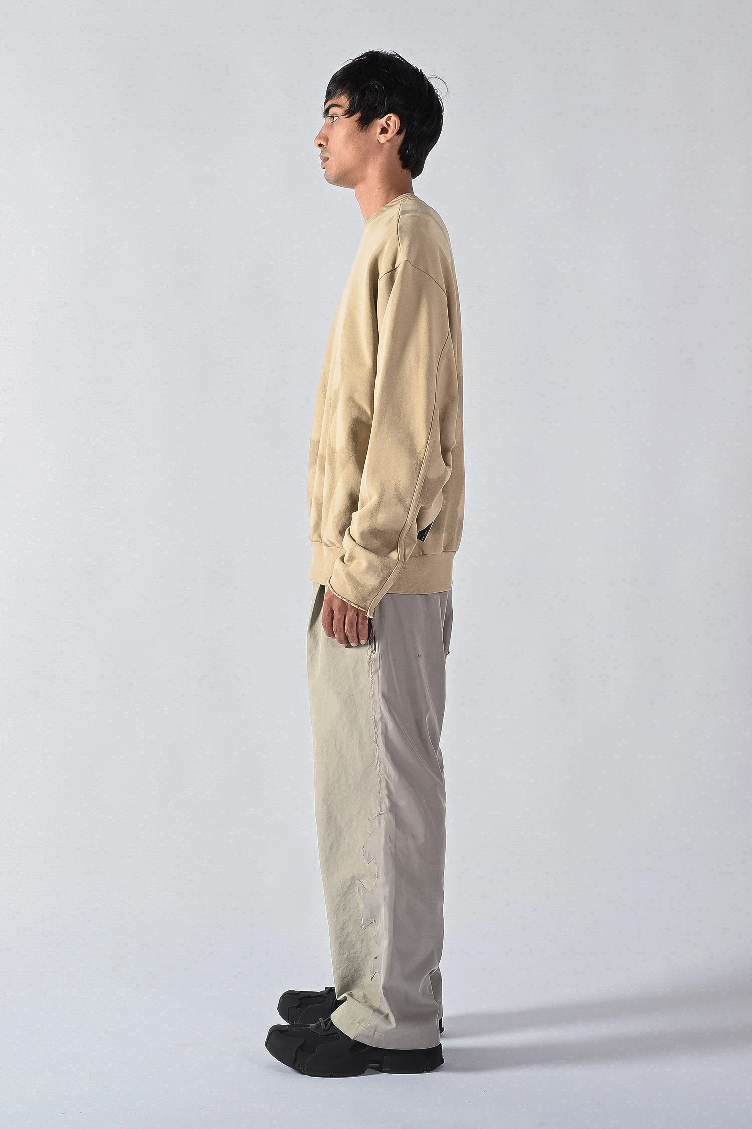 Made of a 400gsm semi brushed french terry cotton, the Cut Off Crew key features include a signature and contemporary box shape and drop shoulder silhouette with cover stitched inverted fabric side panels and raw edge cut-off sleeves.