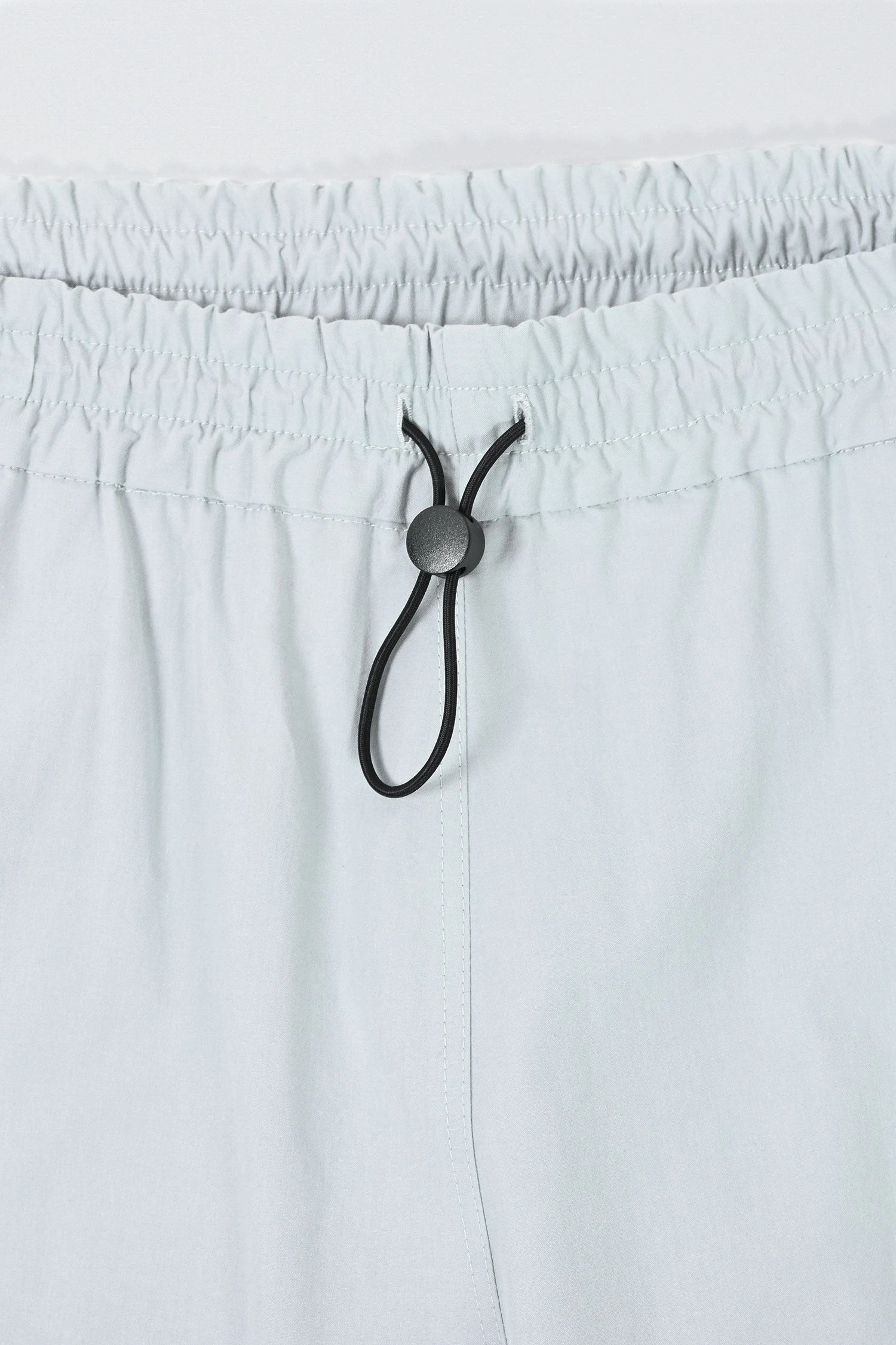 Made Made from peached poly nylon fabric with a straight regular cut. The Offset Shell pant features an oversized left leg side pockets that sits offset across the side seam. Available in two colours, Tarmac and Mirage.