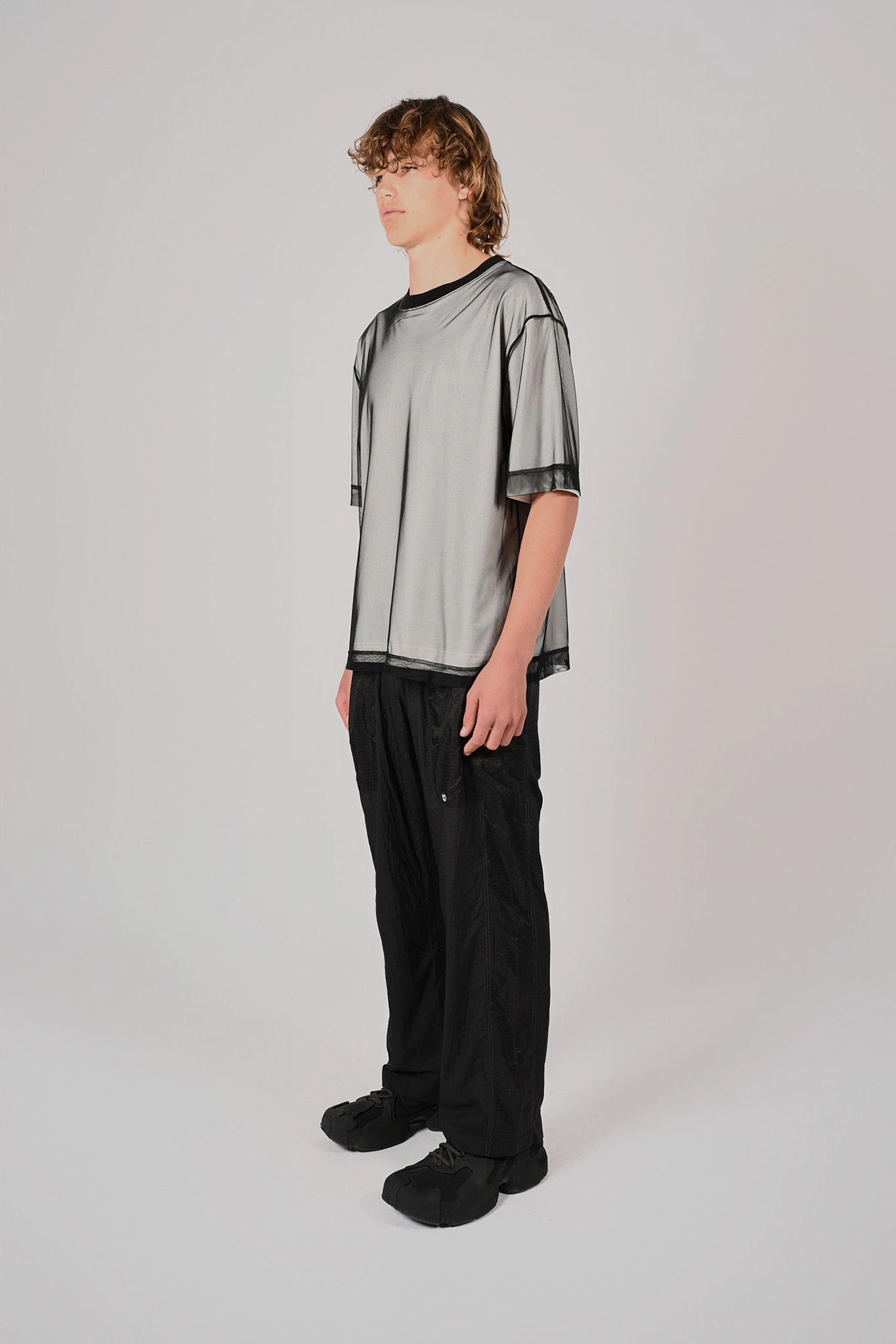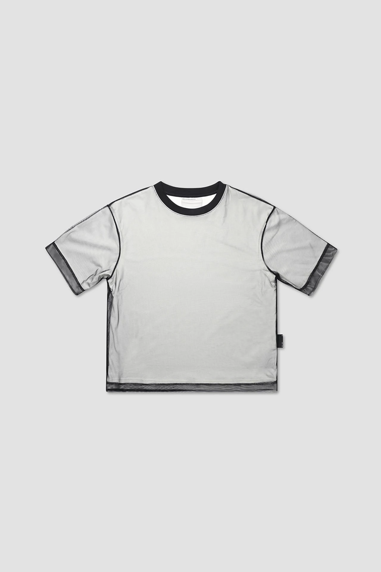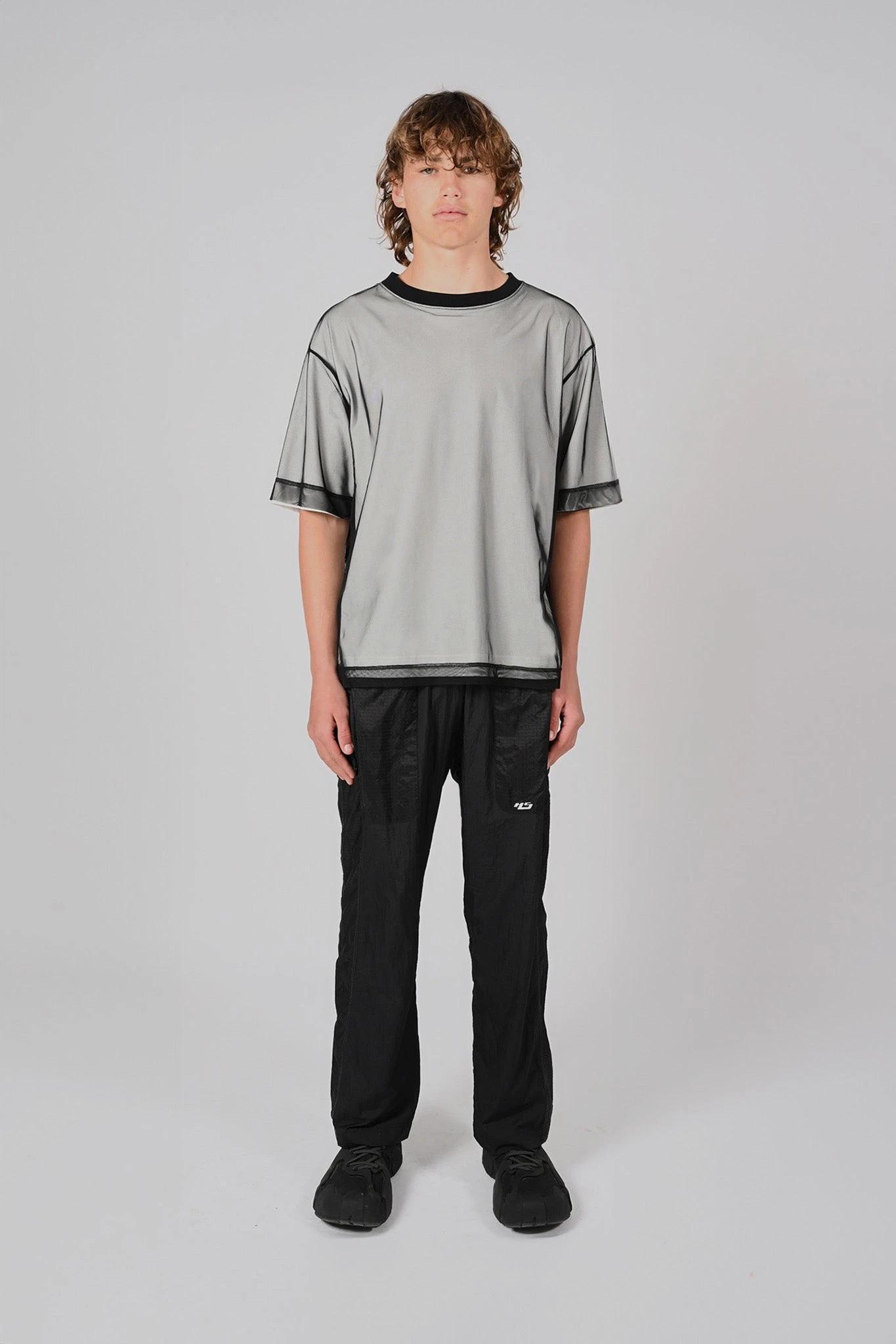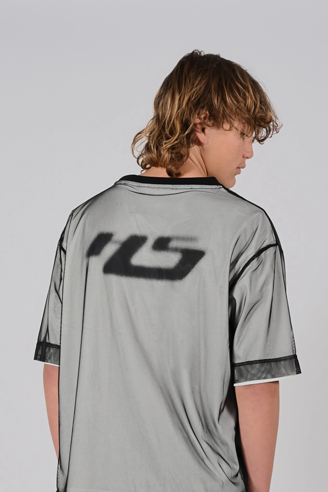 Made of a 100% Cotton lining with sheer polyester transparent outer layer in a regular fit, the short sleeve tee features an oversized OG logo print on the back with a contrast lightweight netted fabric layered over the top.